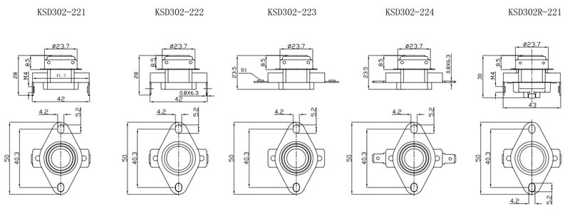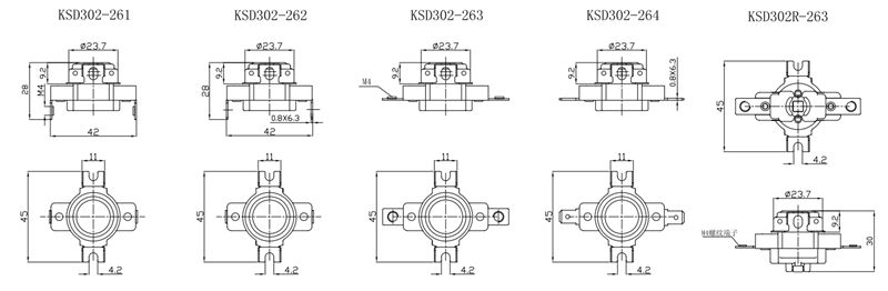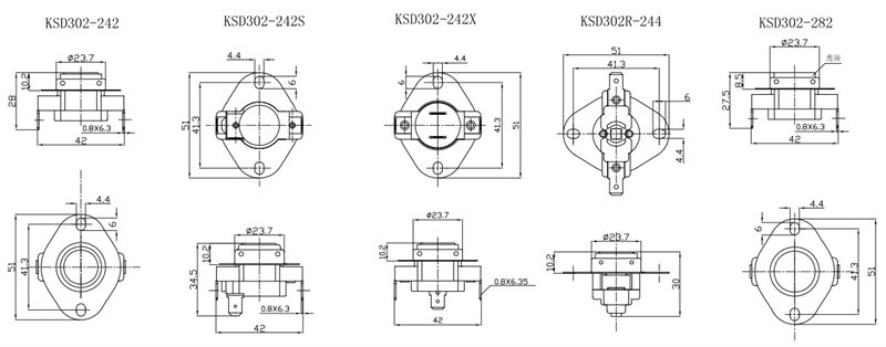 手动复位型:温度上升,触点断开,温度下降,手动按复位柄接通;